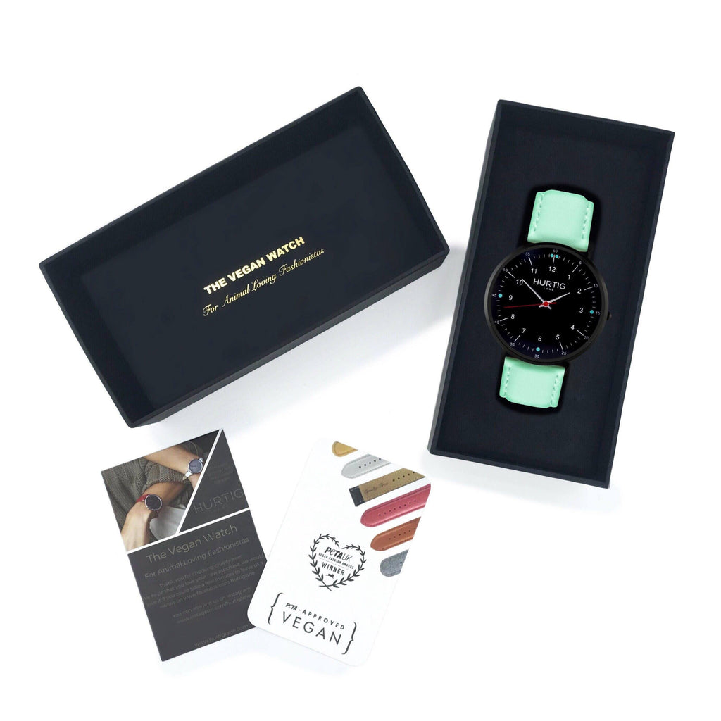 Moderno Vegan Leather Watch Silver, Black & Mint Watch Hurtig Lane Vegan Watches