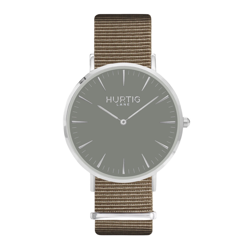 Montezuma Vegan Nylon Nato Watch Silver, Grey & Olive Green