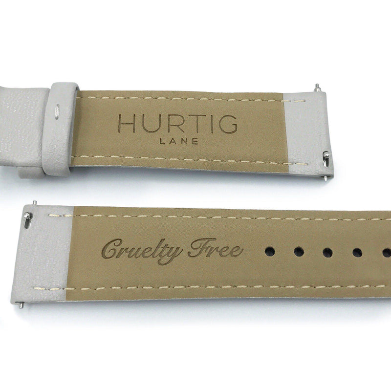The original vegan watch collection for women. The Mykonos cruelty-free range was designed for the fashion conscious minimalist. Elegant and sophisticated yet highly fashionable this timepiece can be worn in any setting, with any outfit. Its versatility and style make it the perfect watch for any occasion. We are passionate about animal welfare and the planet which is why none of our products will ever contain animal products and we always try to use sustainable materials in both our products and our packaging. Hurtig Lane's vegan leather watch straps are made from cotton fibres and recycled water bottles. Our straps are strong, durable and truly ethical. Our straps are not only beautiful but they are built to last! You won't find plastic in any of our packagings and all of our products are presented in beautiful pouches or boxes, making them perfect for gifting. Our collection of watches come in a huge range of colours with interchangeable straps. Mix & match different straps with your timepiece, so that you can always perfectly pair your outfit and accessories!  Our watch bands are branded with our cruelty-free logo, so you can be proud of your ethical, kind & sustainable purchase.
